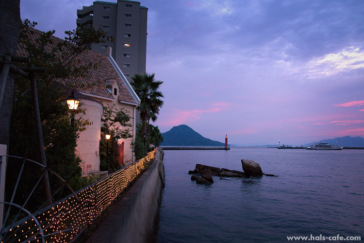 右はおだやかな瀬戸の夕暮れ。左は南仏かスペインあたりの黄昏。微妙なバランスだ。
