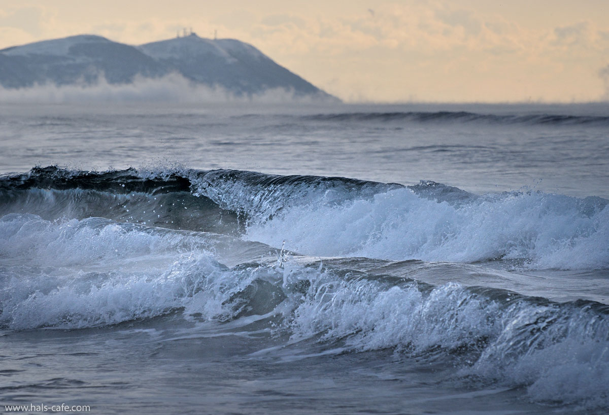 2010年1月17日 大森浜から望む、けあらしの汐首岬と津軽海峡掲載2010年1月18日〜 NIKON D300 1/800秒 247mm(35mm換算) F7.1