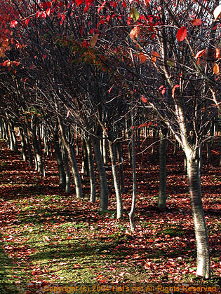 自宅から数百mのところにこの林がある。一応秘密の撮影場所だが、尋ねられたら喜んで教えてさしあげよう。わずか一週間足らずの間に木々はすっかり色づき、枝と地面一面が鮮やかな紅に覆われている。しかし、今年はこの光景を見ることは出来ない。台風のバカヤロー